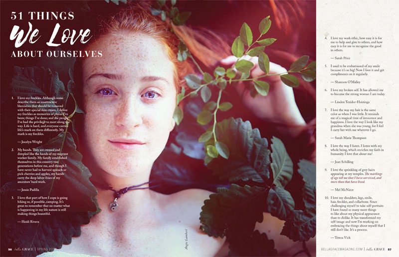 Laugh lines. Freckles. Grey hair. Our readers let go of unattainable beauty ideals and cherish the lovely traits they possess in “51 Things We Love About Ourselves.”