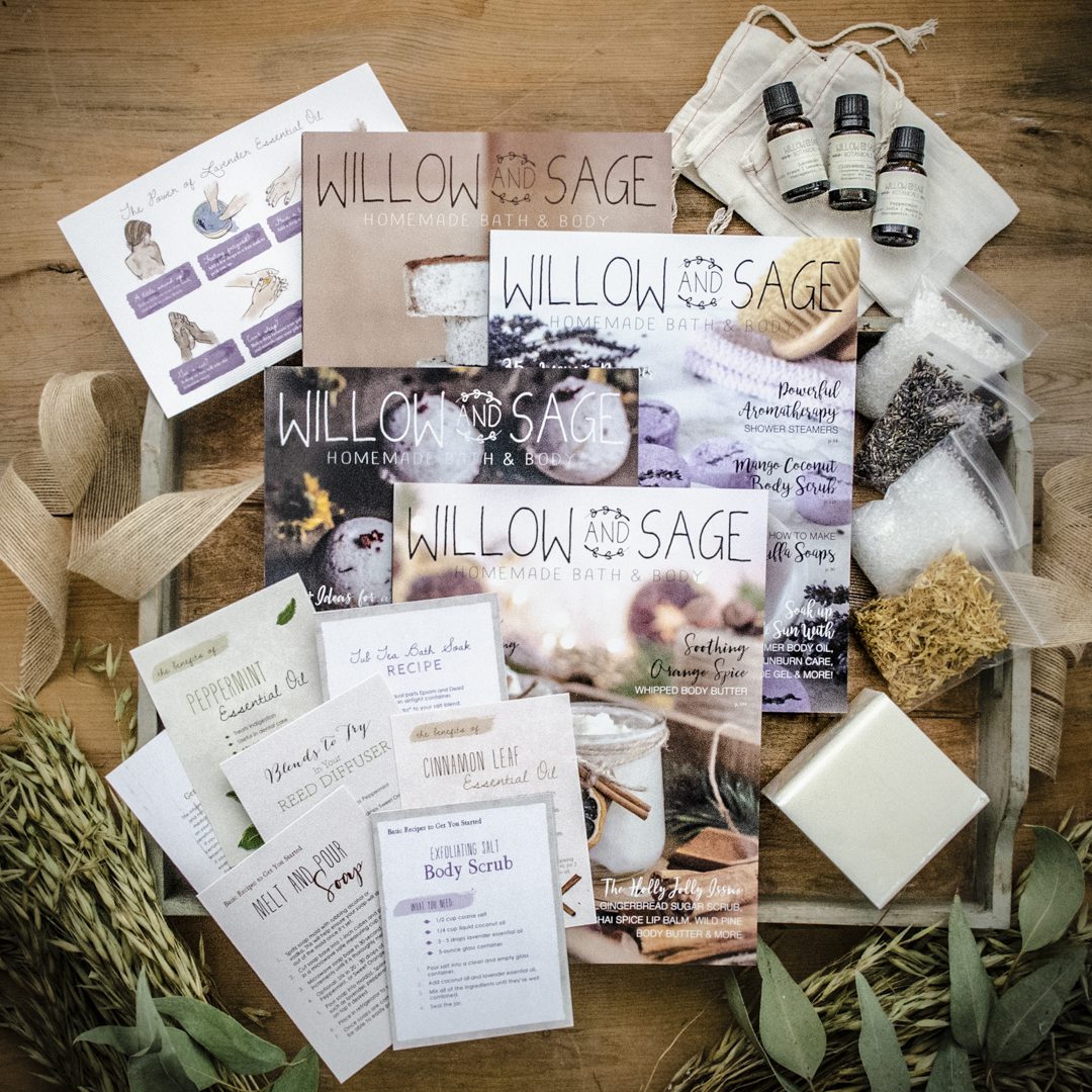 Put some of your garden herbs to good use with the recipes and project ideas included in our Deluxe Willow and Sage Starter Set. It also includes dried lavender buds, calendula petals, and essential oils, so you can make your own bath soaks and diffuser blends. Get Yours >>