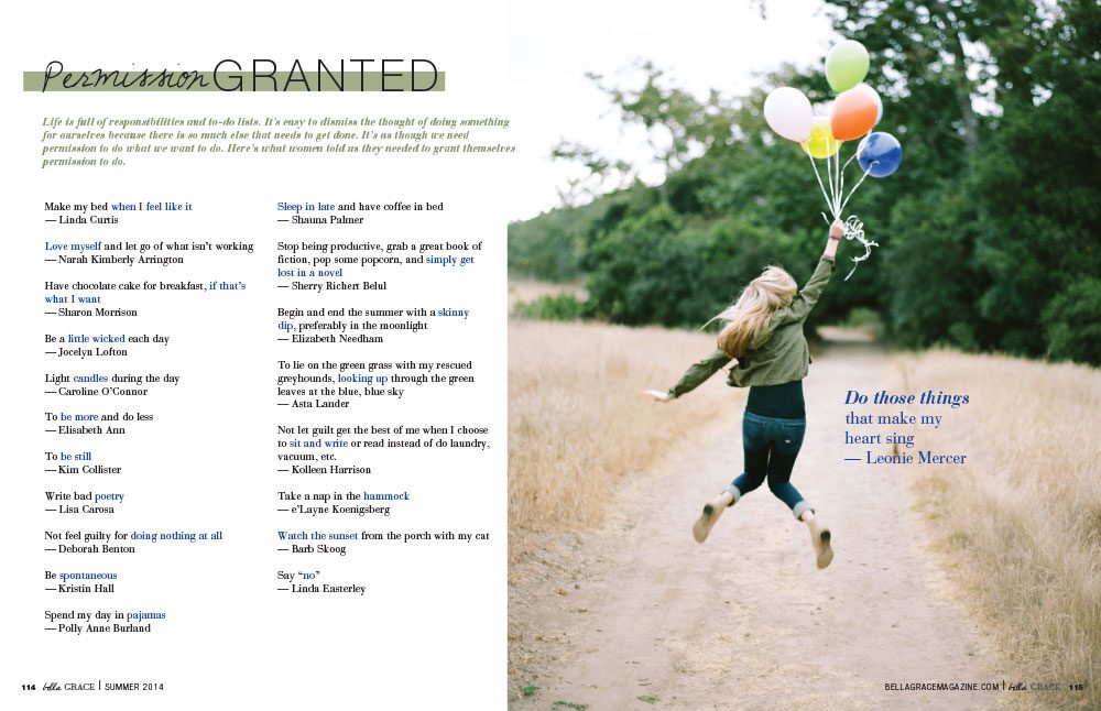 Life is full of responsibilities and to-do lists. It’s easy to dismiss the thought of doing something for ourselves because there is so much else that needs to get done. This list grants permission for you to do the things you want to do!