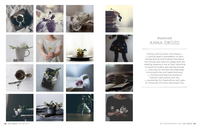 “Living a Bella Grace life means … giving myself permission to take things slowly and finding time daily for things that make me happy …” — Anna Drozd. Don’t miss the special Instagram Spotlights of photographers who find the magic in the ordinary and continuously show it through their beautiful photos.