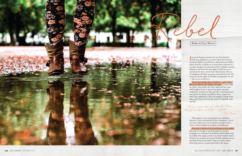Ella Wilson does the unthinkable in “Rebel.” Mismatching socks, blowing bubbles in her drinks, jumping in puddles, you name it! Learn how these little acts of rebellion invited more laughter and magic into her life.
