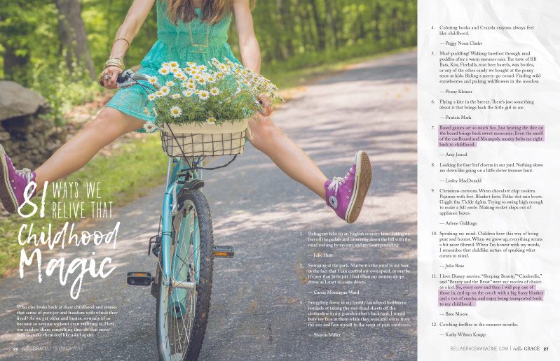 “Flying a kite in the breeze. There’s just something about it that brings back the little girl in me.” — Patricia Mark. In “81 Ways We Relive That Childhood Magic,” our readers share the special things they do to make them feel like a kid again.